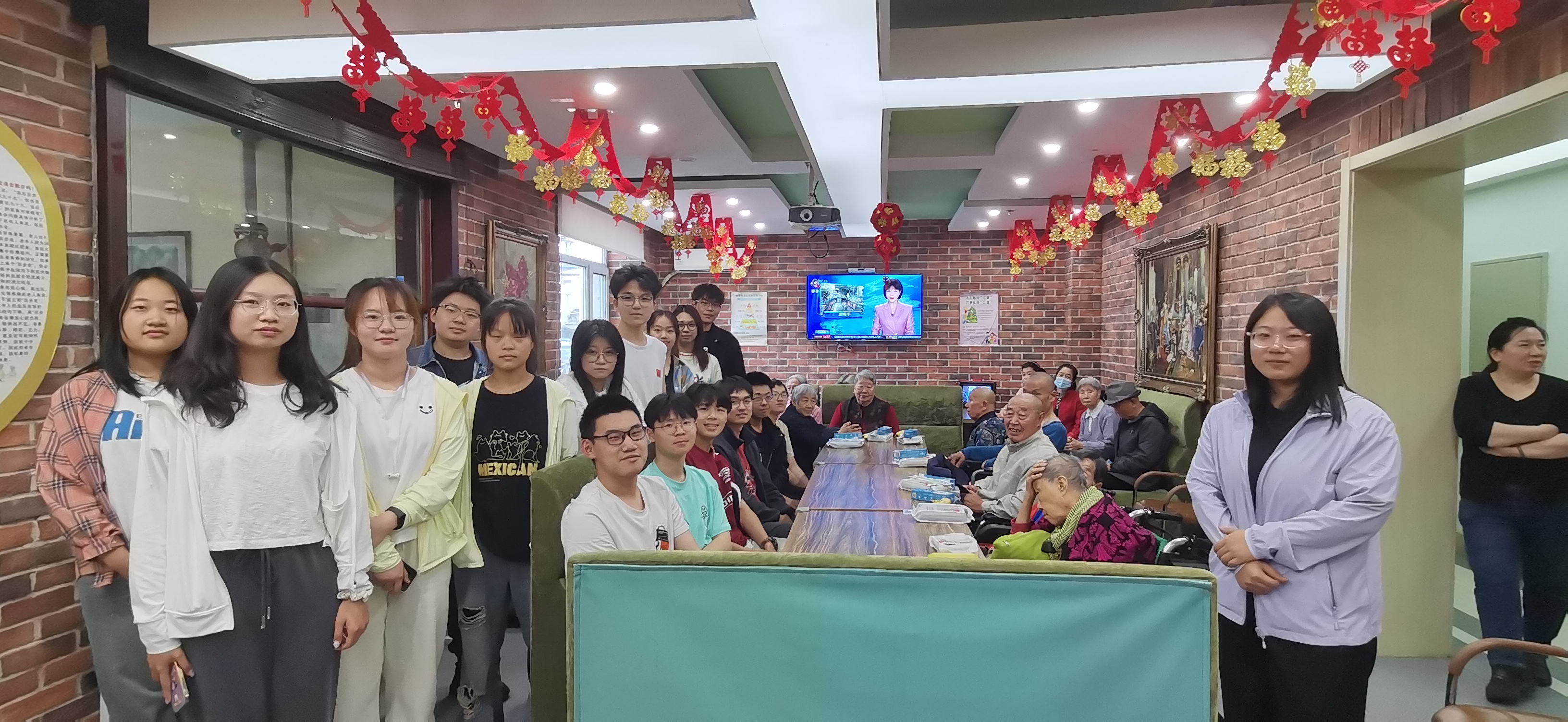 在社区工作人员的带领下,志愿者们怀着诚挚之心,带着慰问品来到敬老院,受到了院长及工作人员们热情友好的接待。活动中,志愿者们为老人分发水果等慰问品,表演了精心准备的节目,包括唱歌、讲故事等,还与老人们聊了很多有趣的故事,听取他们的生活经历,分享生活的快乐与挑战,了解了属于他们那个年代的风采。在活动的最后,院长教导同学们,要珍惜当下和父母亲人在一起的时光,多一点关心,多一分牵挂。